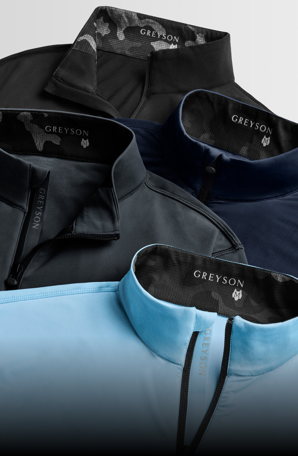 Engineered with advanced performance fabrics, Greyson’s quarter-zips provide lightweight warmth and unrestricted movement for every season. This collection is designed to meet every moment: Discover lightweight quarter-zips ideal for transitional days and sweater-style pullovers crafted from rich, luxurious yarns that bring a refined, polished finish to cooler weather. Thoughtful detailing and precision tailoring ensure each piece moves effortlessly between active performance and refined everyday style.
