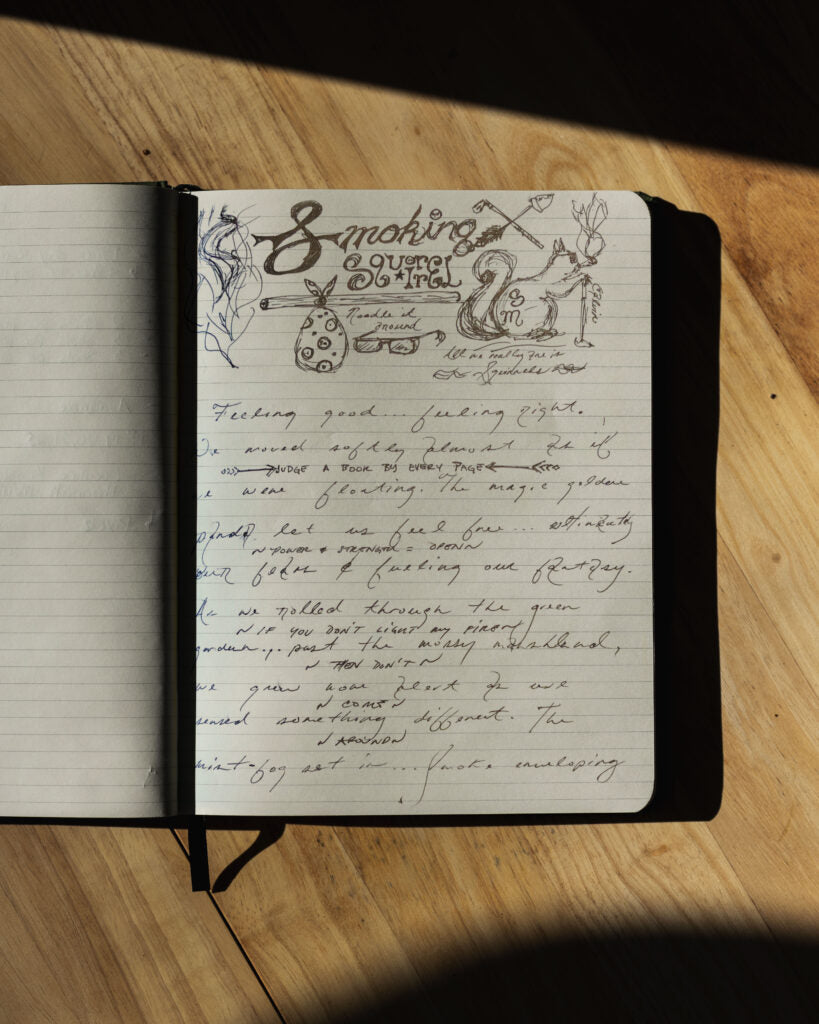 Feeling good … feeling right. We moved softly, almost as if we were floating. The Magic Golden Panda let us feel free, eliminating our fears & fueling our fantasy. As we rolled through the green garden, past the mossy marshland, we grew more alert as we sensed something different. The mist fog set in … smoke enveloping the ghost tree forest. We felt a sense of calm with mystery and intrigue. Fearing what would emerge from the ambiguos smoke-filled forest, we stood calmly quivering. As we spoke among ourselves, a squirrel filled with swagger … smoking a peace pipe … skipped over … a truly mystical being. The Smoking Squirrel would open his heart, shine his creativity, and become an important friend of the Pack. The Smoking Squirrel would creatively push us to see beyond and think of the unthinkable.
