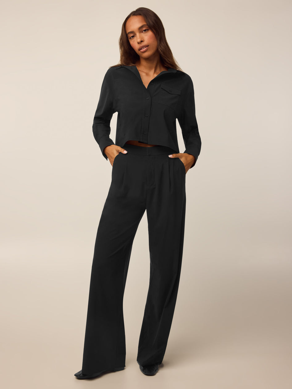 The 30" Phoenix Wide Leg Trouser introduces the perfect blend between style and comfort for the modern lifestyle. With a high-rise cut and full-length design, these women’s trousers deliver a flattering silhouette that effortlessly transitions from day to night. The lightweight fabric, crafted from a luxurious Italian blend of Elastane, not only exudes elegance but also provides superior comfort throughout the day. The dress sport feel adds a touch of sophistication, making these trousers a versatile wardrobe staple for any season.