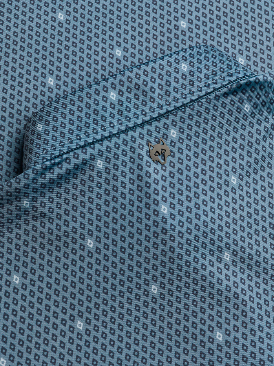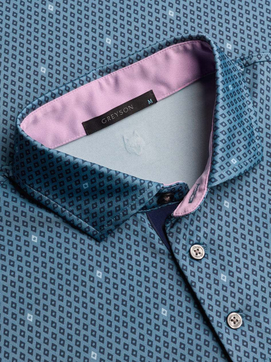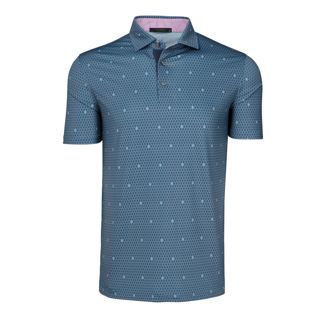 The Black Diamond Short Sleeve Polo is made from a lightweight printed performance fabric that breathes easily, dries fast, and resists odor — built for performance without compromising on style. Featuring an all-over geometric diamond motif that nods to its name, a self collar with internal stand adds structure, while the contrast pique placket brings a subtle hit of detail. The three-button placket keeps the look clean and understated. Finished with open cuffs for all-day comfort on and off the course. 90% Recycled Polyester | 10% Spandex Machine Wash Cold | Only Non-Chlorine Bleach When Needed | Remove Promptly |...