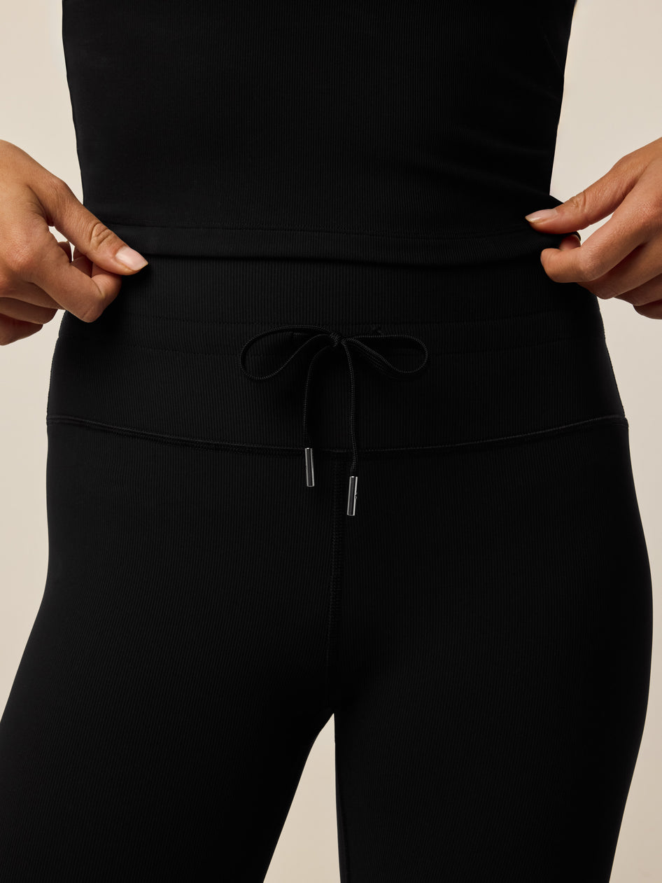 Comfort and elegance designed to go beyond the yoga studio, the Cleo Legging is made with a luxurious blend of elastane designed for superior performance. The fabric holds an elevated ribbed texture that accentuates the details and silhouette of this high-waisted legging. Finished with a tonal Gothic āGā for an elevated touch.