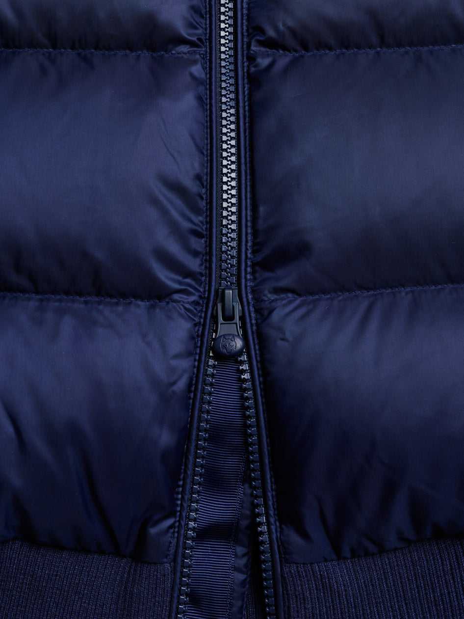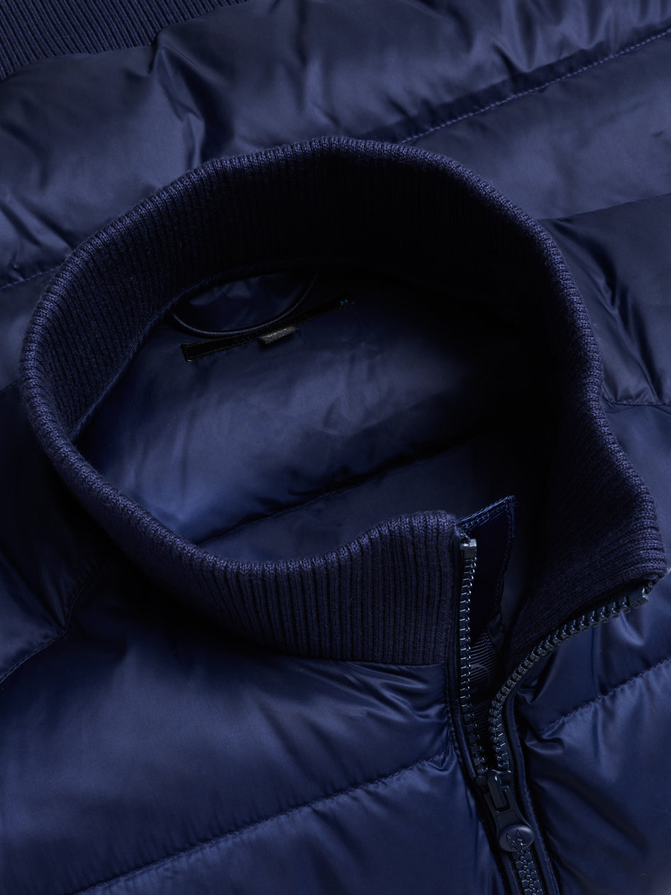 The Cody Full-Zip Down Vest features channel quilting filled with premium insulated down for lightweight warmth. Its packable design makes it easy to stow and carry, while the water-repellent finish helps protect against the elements. A ribbed collar and waistband ensure a tailored fit, while a rivet detail at the left pocket adds subtle branding. Designed as a versatile layering piece, it offers warmth without bulk for cold days on the move.