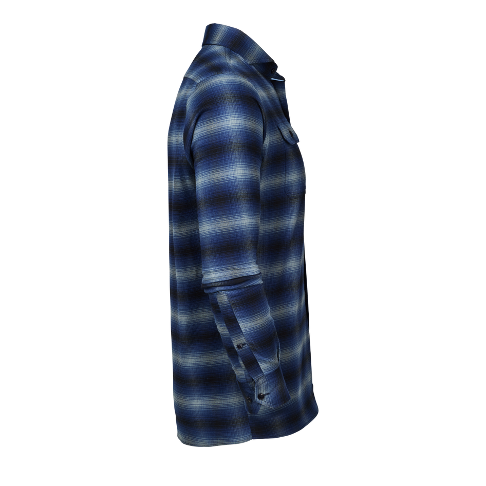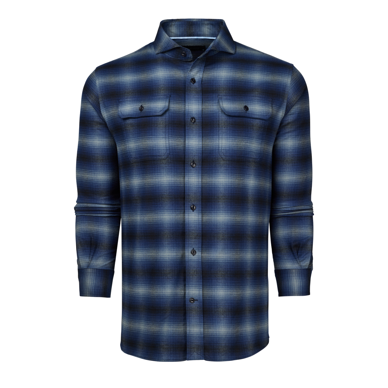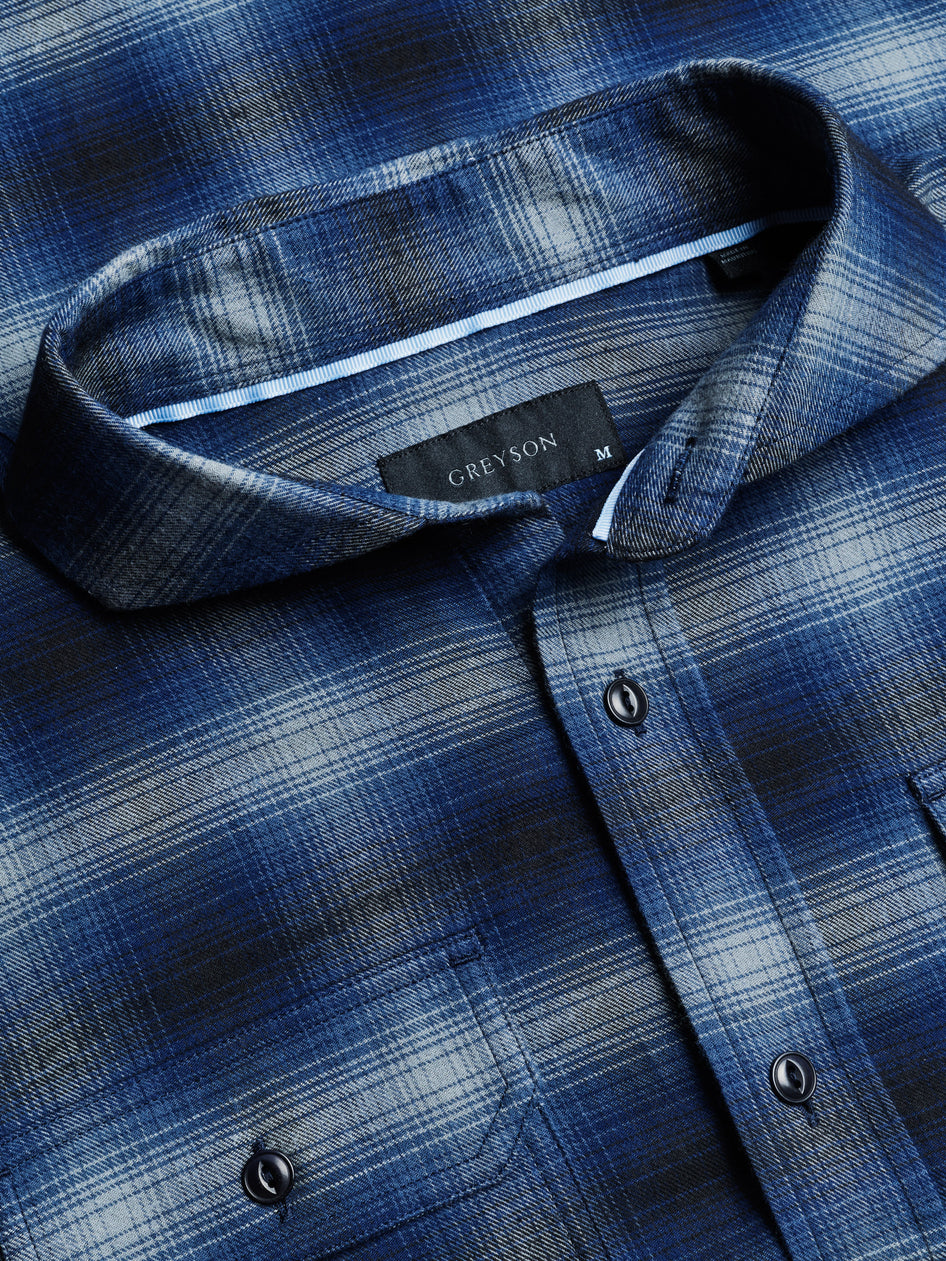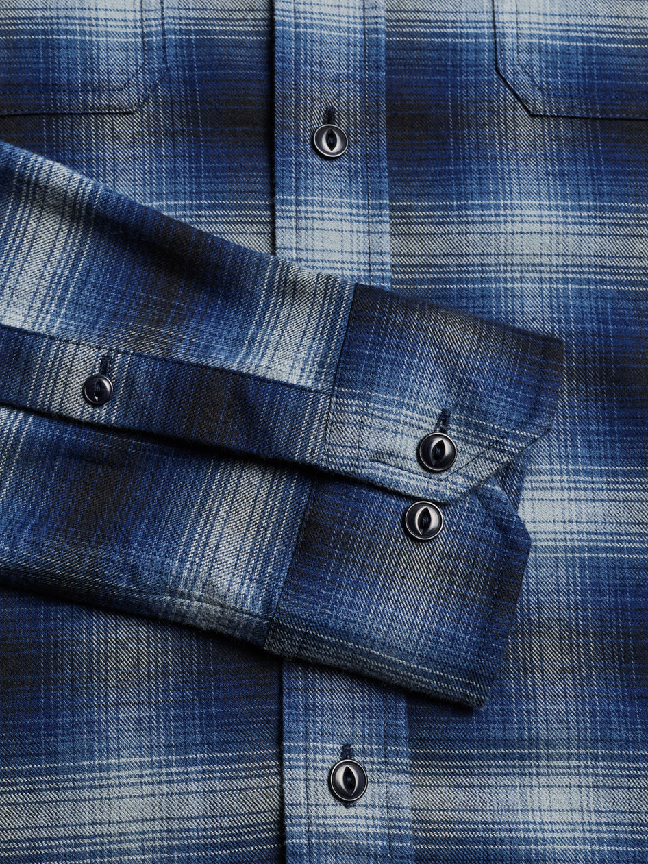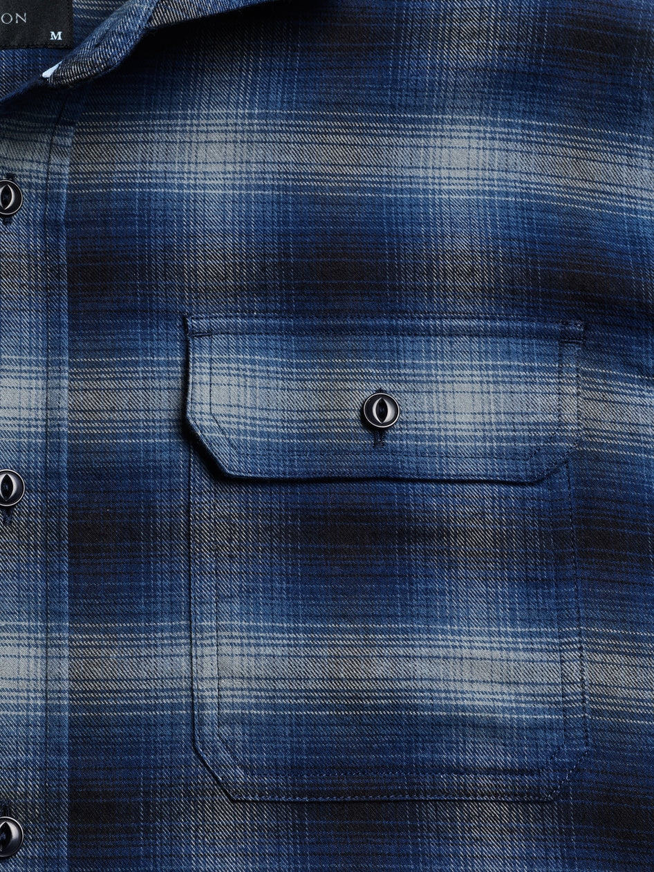 The Copake Shadow Plaid Work Shirt is crafted from lightweight flannel with a soft, brushed feel for year-round wear. Designed with a relaxed spread collar and two flap chest pockets, it balances utility with a refined finish. Two-hole cateye corozo buttons add a subtle nod to heritage craftsmanship, while grosgrain contrast trim inside the neck provides a clean interior detail. A versatile layer that works as well on its own as it does under a jacket. 97% Cotton | 3% Elastane Do Not Machine Wash I Do Not Bleach I Do Not Tumble Dry I Cool Low Iron If Needed...