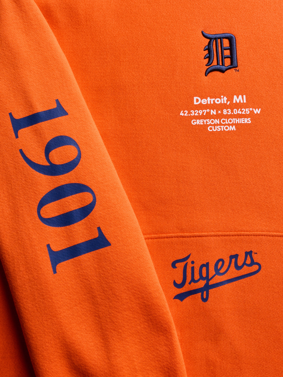 The Detroit Tigers Playoff Rally Hoodie is crafted from 100% cotton for superior comfort. Designed to become a staple across your lifestyle, this buttery-soft hoodie features ribbed cuffs and hem for added comfort. It's the perfect addition to your everyday wardrobe, carrying you through the season with refined comfort. This custom product is part of a limited capsule released by Greyson in collaboration Soft Goods for our hometown team, the Detroit Tigers.