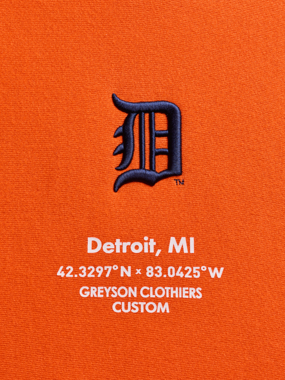 The Detroit Tigers Heavyweight Hoodie is crafted from 100% cotton for superior comfort. Designed to become a staple across your lifestyle, this buttery-soft hoodie features ribbed cuffs and hem for added comfort. It's the perfect addition to your everyday wardrobe, carrying you through the season with refined comfort. This custom product is part of a limited capsule released by Greyson in collaboration with our hometown team, the Detroit Tigers. 100% cotton Machine Wash Cold With Like Colors | Do Not Bleach | Tumble Dry Low Heat | Warm Iron If Needed | Wash Before Wearing, Garment Dye Styles May Bleed...