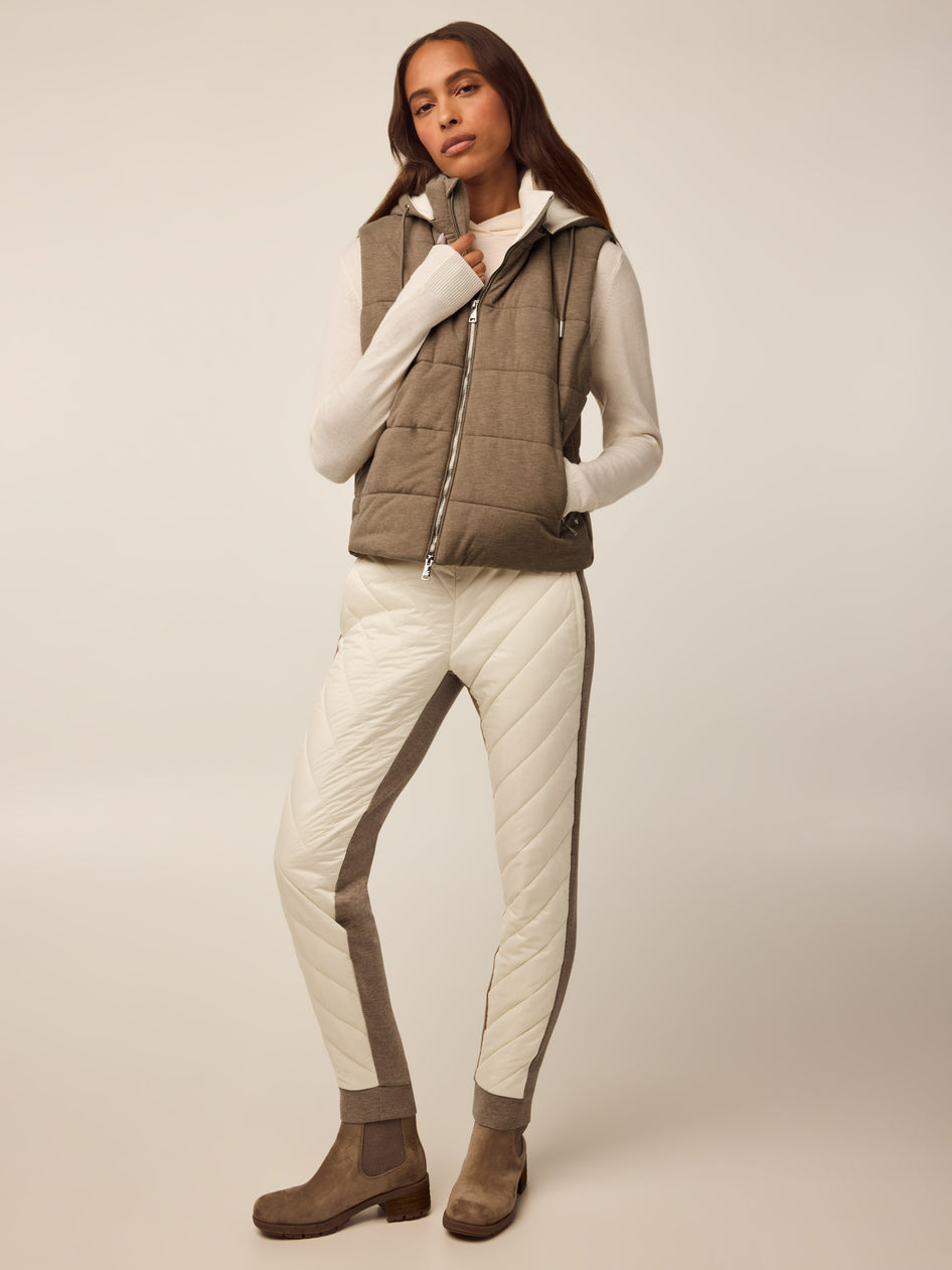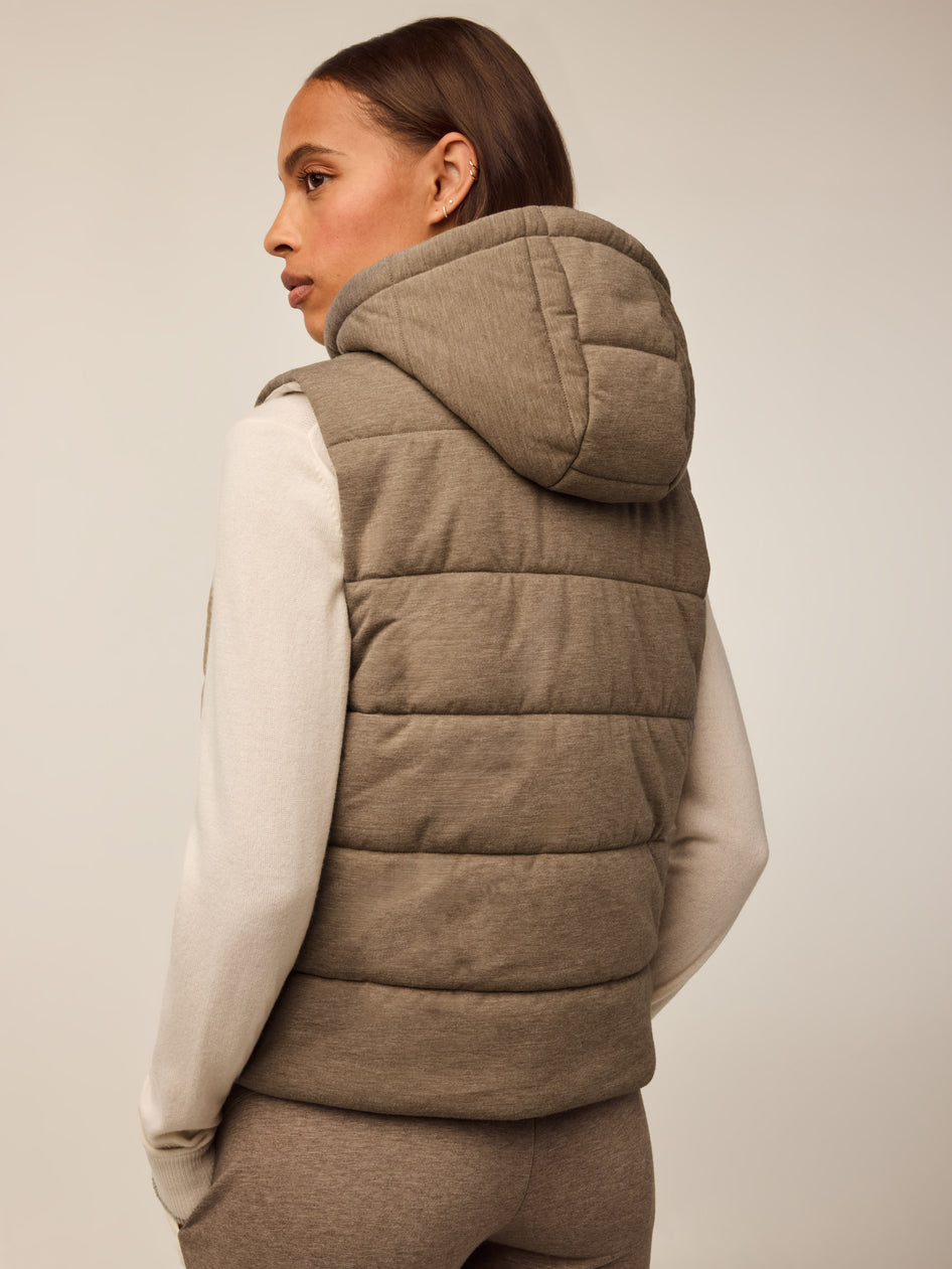 The Eos Luxe Vest is crafted from a soft, technical fabric that keeps you warmth without weighing you down. Its quilted construction and matte texture create a refined, modern silhouette. Designed with a hood for added coverage and zip pockets on the front to keep your valuable secure. A functional vest for effortless layering during the colder season.
