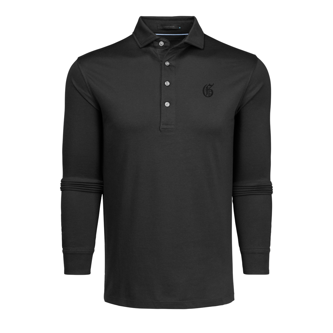The Gothic "G" Omaha Long Sleeve Polo is crafted from a cooling pique fabric that blends natural cotton with performance fibers for lasting comfort. Designed with four-way stretch, it moves effortlessly with you while maintaining its shape. Moisture-wicking properties keep you dry, and the fabric’s cooling technology ensures comfort in warmer conditions. A versatile staple, this performance polo transitions effortlessly on and off the course. Finished with the Gothic "G" emblem embroidered on the front, a signature Greyson detail.
