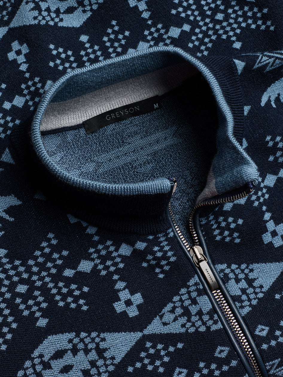 The Saratoga Grand Teton Quarter-Zip Sweater is crafted from 100% merino wool for lightweight warmth that is exceptionally soft. It features suede taping on the zipper placket and a crafted horn pull, along with Greyson's signature color-contrast tipping on the left sleeve. Finished with rib-knit sleeves, collar, and hem, this piece layers effortlessly over shirts or under outerwear, making it a versatile choice from the office to the outdoors. 100% Merino Wool Dry Clean Only
