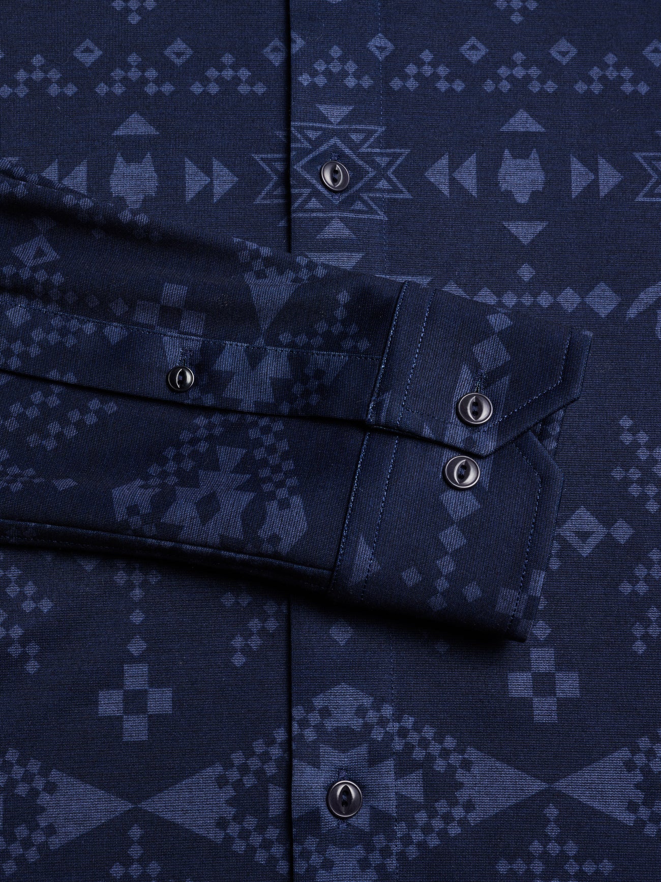 The Grand Teton Woodward Knit Shirt is crafted from a stretch knit fabric that offers soft structure and ease of movement. It features a cutaway collar and two-hole cateye corozo buttons for refined detail. Grosgrain trim inside the neck adds a polished finish. Designed for versatility, it transitions seamlessly from the office to casual dinners and weekend wear. This men’s long-sleeve knit button-down combines comfort with elevated style, making it a wardrobe essential for year-round wear. 60% Polyester | 33% Viscose | 7% Elastane Machine Wash Cold with like Colors I Do Not Bleach I Tumble Dry Low I Cool...