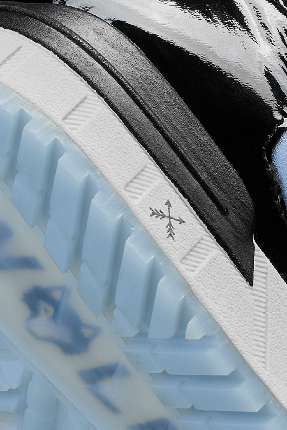 This limited edition shoe is decorated with custom iconography including a collaborative debossed leather patch on the tongue.