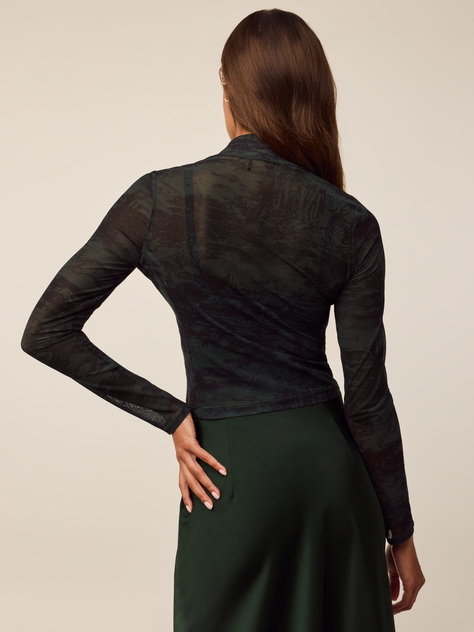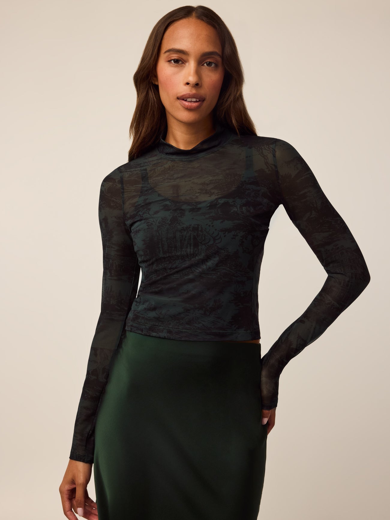Huntress Toile Long Sleeve Mesh Mock Neck Top