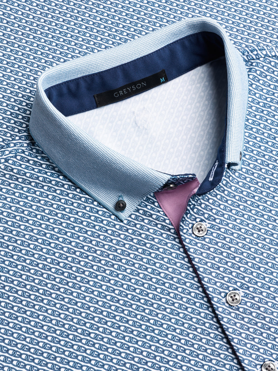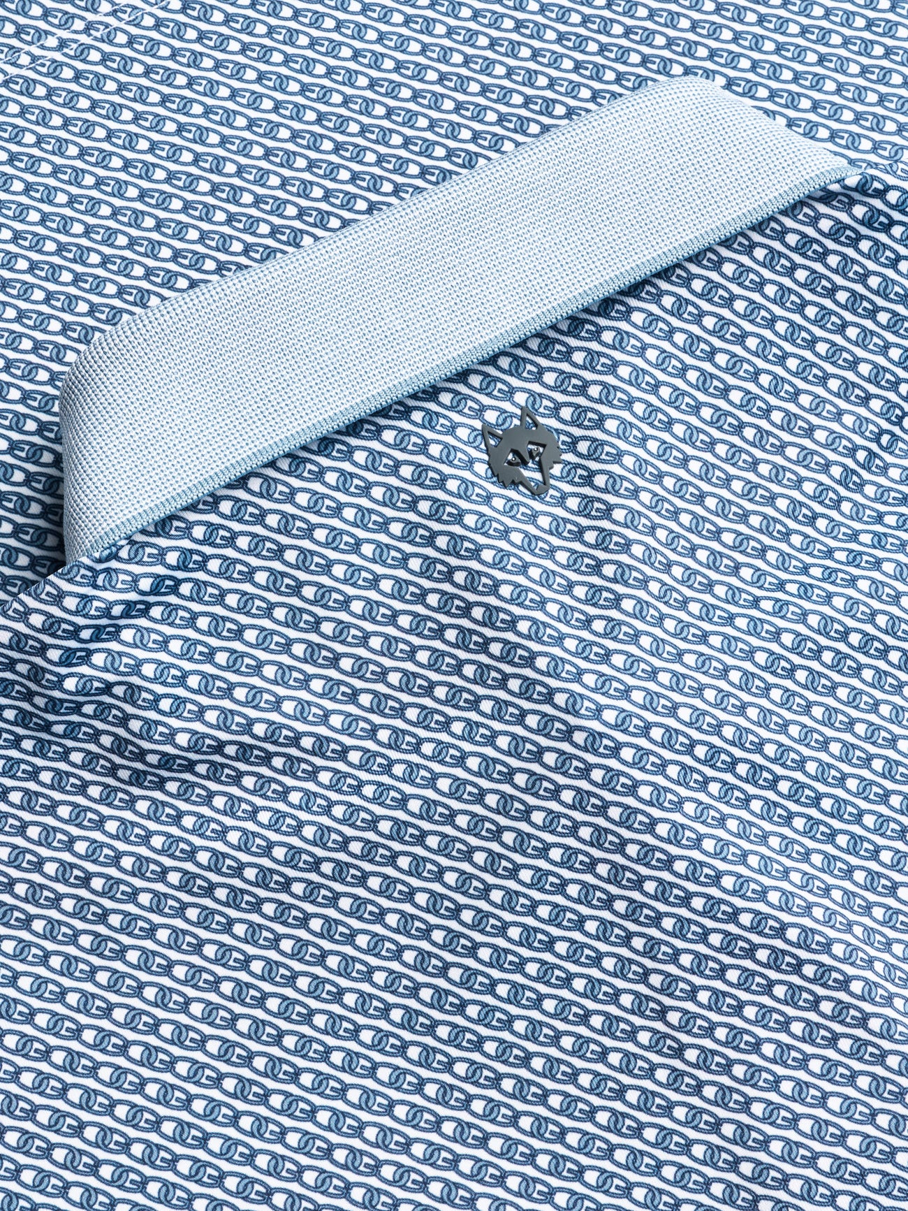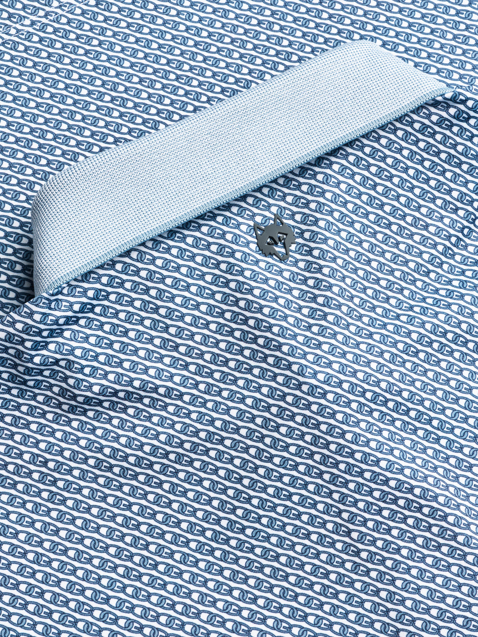 The Link Short Sleeve Polo is crafted from lightweight performance fabric that keeps you cool, dry, and fresh with anti-odor technology. Featuring an all-over chain link print that reflects its name, it includes a four-button placket with contrast detailing under and at the top facing for an elevated finish. The open hem and cuffs provide ease of movement and a comfortable fit, making it a go-to choice on and off the course. 90% Recycled Polyester | 10% Spandex Machine Wash Cold | Only Non-Chlorine Bleach When Needed | Remove Promptly | Tumble Dry Low | Cool Iron If Needed |...