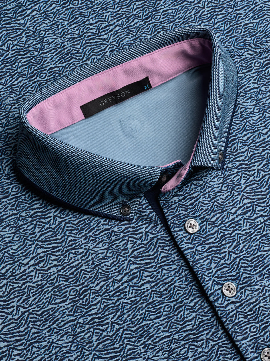 The Range Short Sleeve Polo is crafted from lightweight performance fabric that delivers breathability, quick-drying function, and anti-odor technology. Featuring an all-over abstract topographic print that nods to its name, it includes a button-down knit cutaway collar and a four-button placket with contrast detailing under and at the top for understated sophistication. The open hem and cuffs offer a comfortable fit that moves with you throughout the day, making it ideal for the course or everyday wear. 90% Recycled Polyester | 10% Spandex Machine Wash Cold | Only Non-Chlorine Bleach When Needed | Remove Promptly | Tumble Dry Low |...