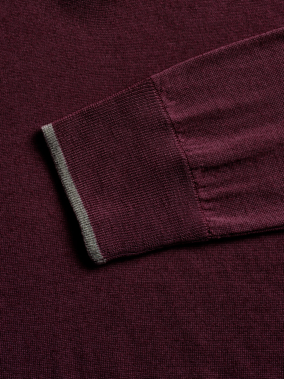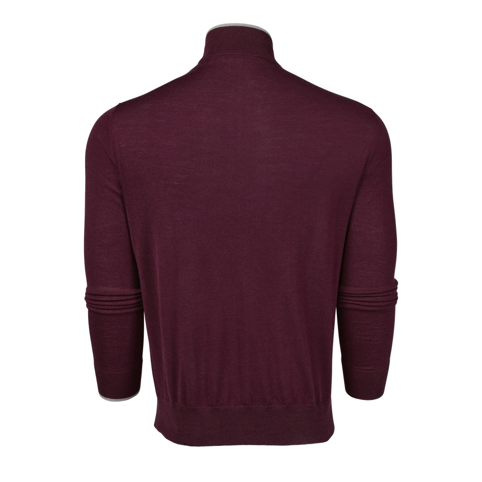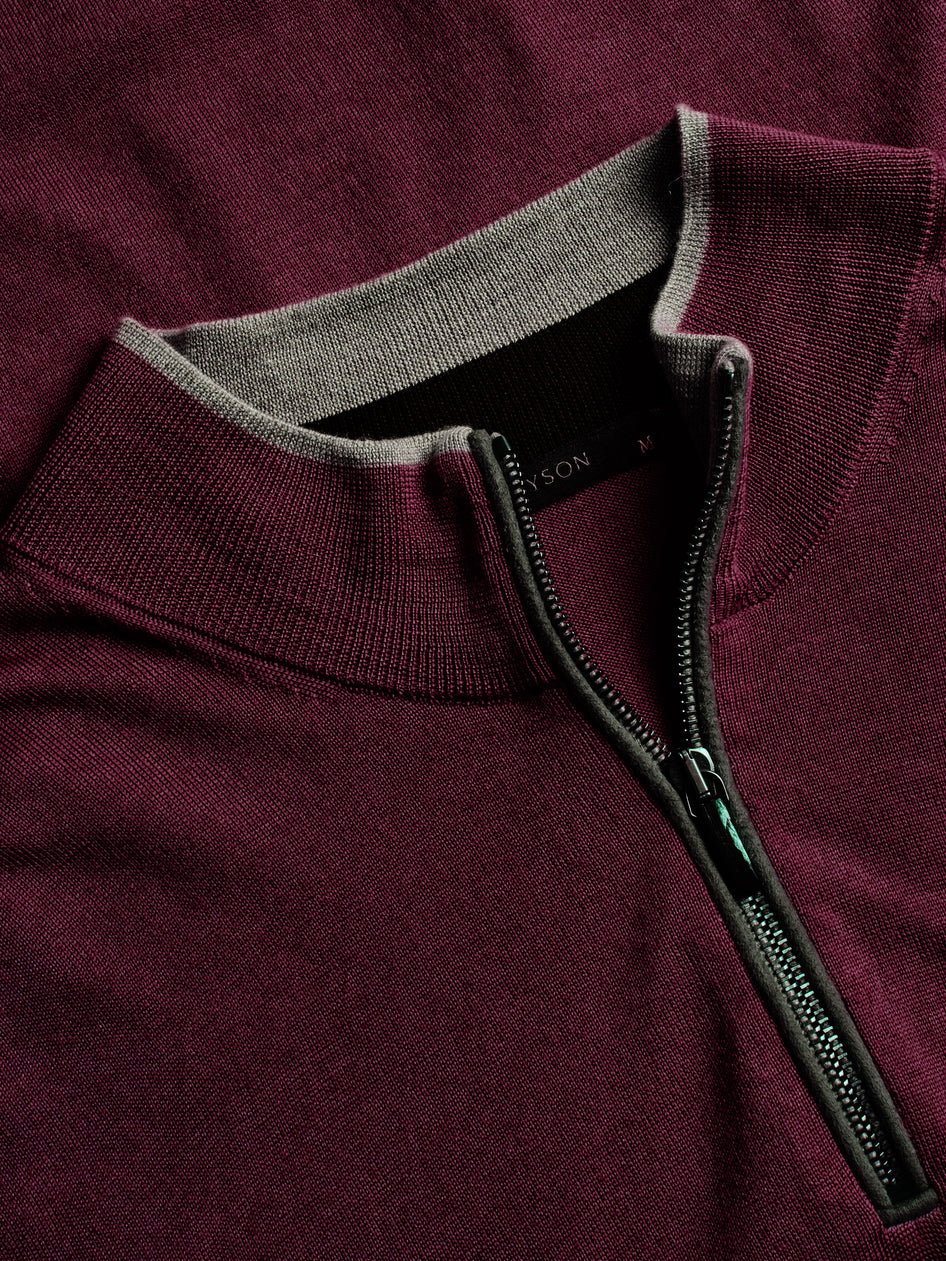 The Saratoga Quarter-Zip Sweater is crafted from 100% merino wool for lightweight warmth that is exceptionally soft. It features suede taping on the zipper placket and a crafted horn pull, along with Greyson's signature color-contrast tipping on the left sleeve. Finished with rib-knit sleeves, collar, and hem.