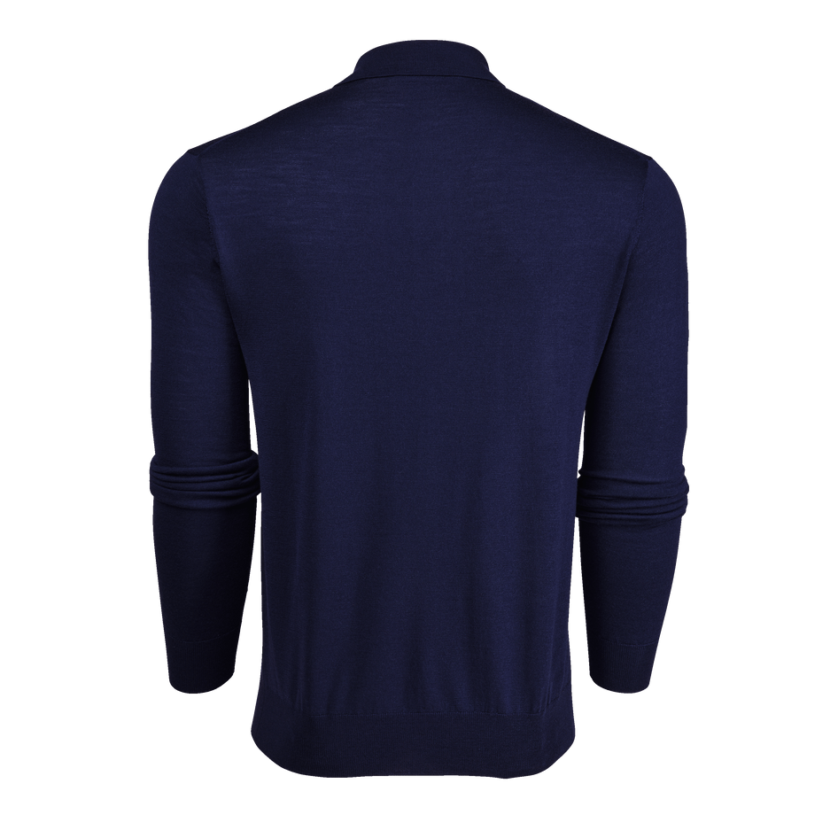 Constructed with luxurious merino wool, this sophisticated long sleeve sweater polo is a must for the season. The comfort-driven fabric delivers plenty of freedom of movement while keeping you warm. Finished with a ribbed collar, hem, and sleeves for an elevated touch.