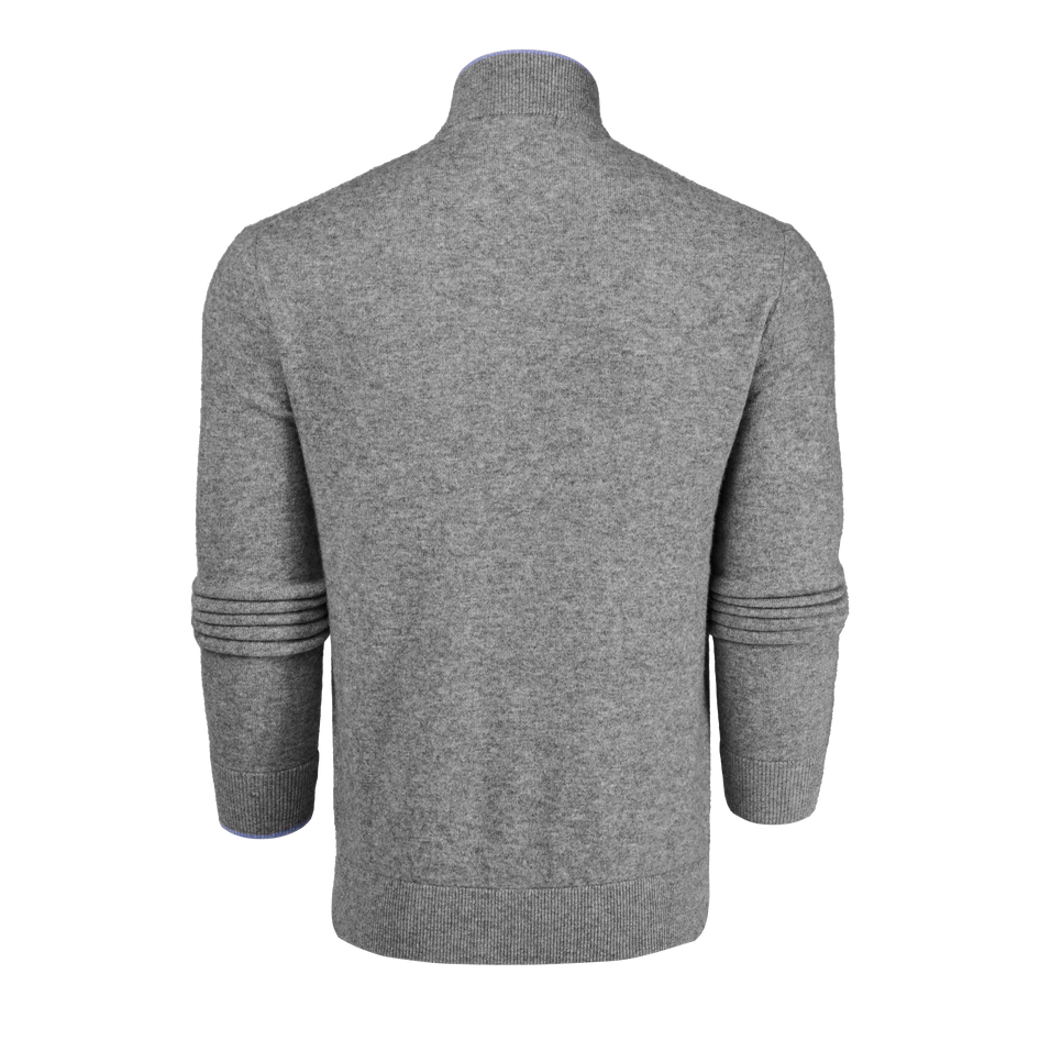 The Sebonack Quarter-Zip Sweater is crafted from a premium blend of wool and cashmere. Designed for buttery-soft comfort, this sweater keeps you light while providing warmth. Featuring a suede taping on the zipper placket and a crafted horn pull, it has Greyson's signature color contrast tipping on the left sleeve. Finished with rib-knit sleeves, collar, and hem.